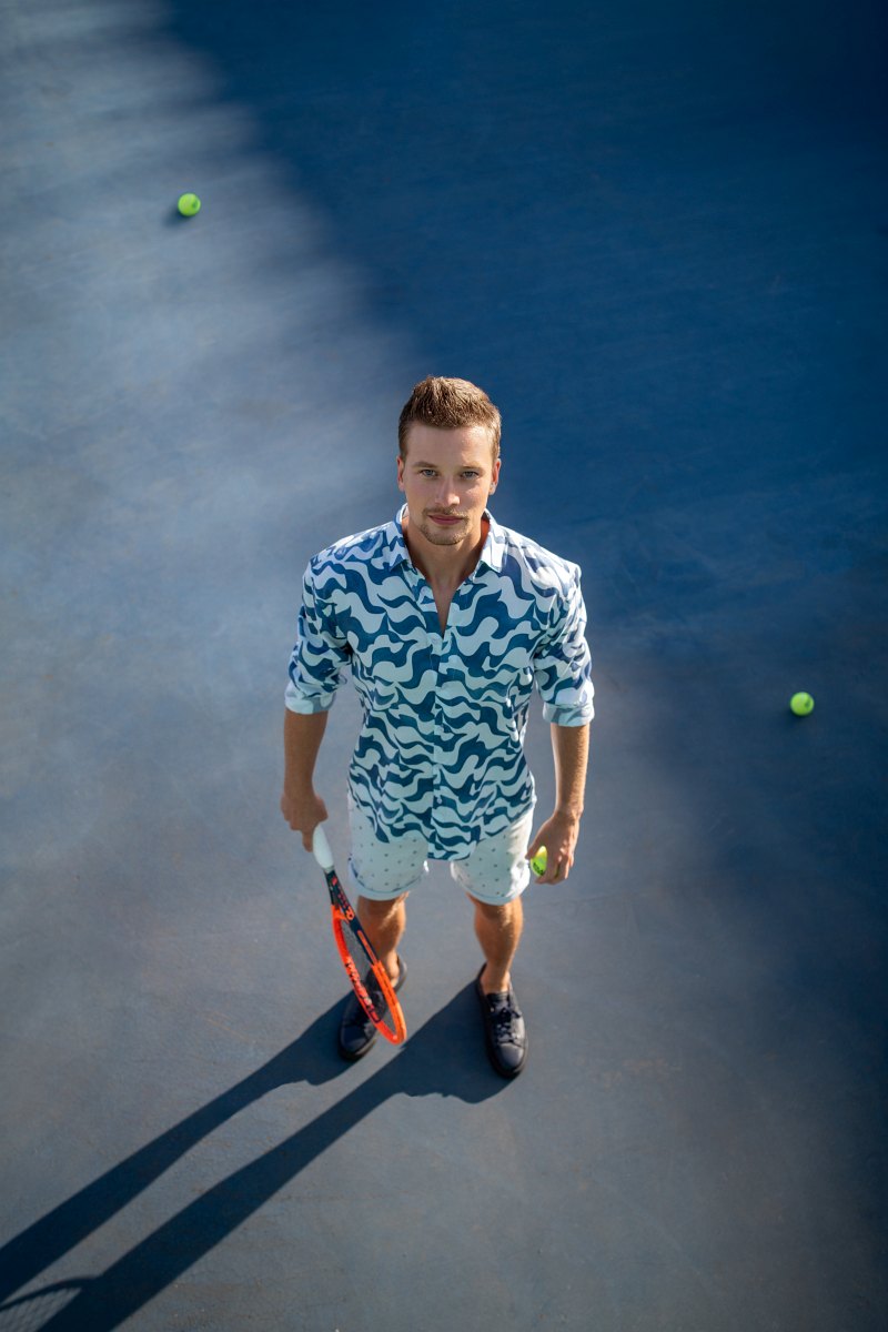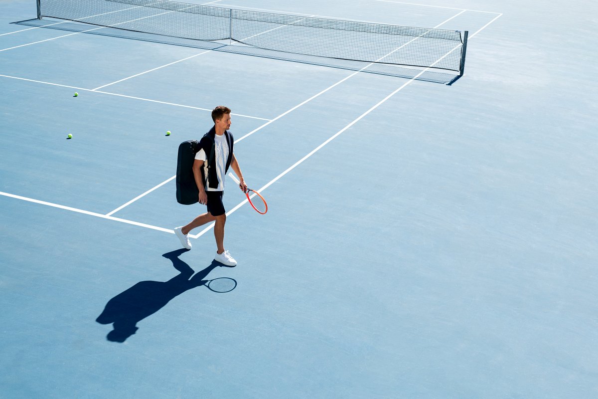 Celou kolekci jsem nechal ožít v autentickém prostředí – fotili jsme ji na tenisových kurtech na Štvanici v Praze. Pohyb hráčů, struktura povrchu hracího pole, světlo odrážející se od bílých linií kurtu – to vše podtrhlo sportovního ducha kolekce. Výsledné fotografie i videa zachycují přesně to, co jsem chtěl sdělit: že sport nemusí být jen výkonem, ale může být i poezií pohybu.
